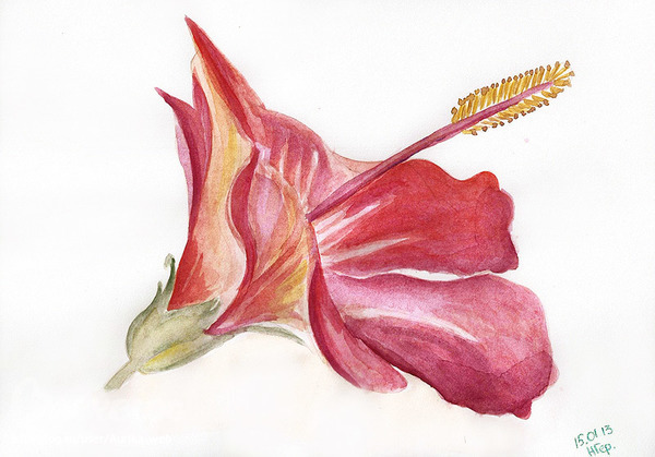 Сегодняшний Гибискус. Акварель. Решила карандашами без особой надобности не рисовать. Слишком их видно.