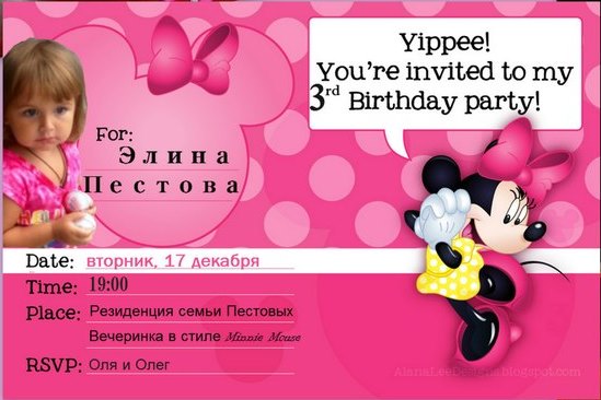 Элина конечно очень любит свой день рождения, прошлый ей особенно запомнился, я его делала в стиле Мини Маус. Фото прилагаются: