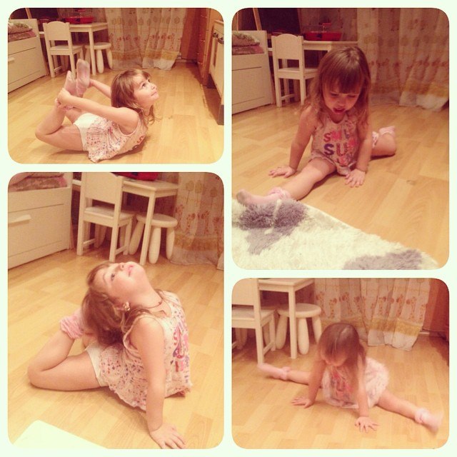 На гимнастики в этом плане все строже, здесь халява не прокатит!!!Надо трудиться. Но трудиться ей нравится, она от гимнастики в восторге полнейшем!!!