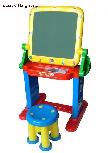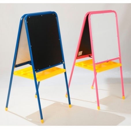 Мольберт двусторонний: • графитовая сторона для мелков, • магнитная сторона для маркеров. У мольбертов есть съемный планшет/держатель для бумаги. Мелки, маркер и губка в комплекте.Цена 2700
