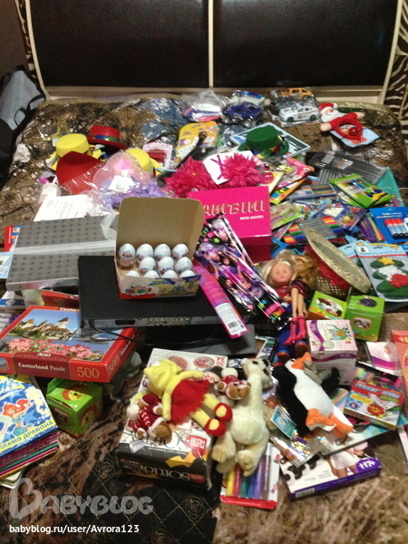 кстати,я переборщила с маленькими подарками и многие привозят запечатанные пазлы или еще что-так я собрала в пакеты подарки на рождество всем!!!!