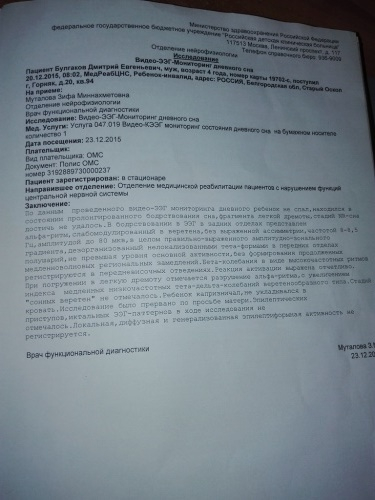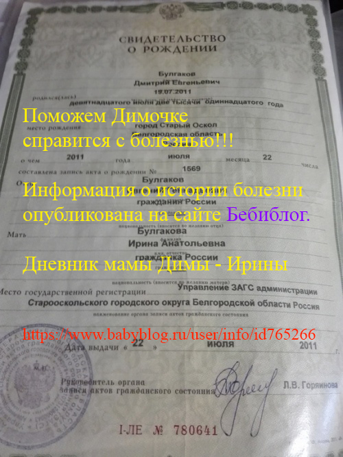 "Госпитализация у нас в Москву 10.05. Питание мамы за свой счет. Проведение манипуляций не входящих в ОМС тоже за свой счет. Доктору 5 тыс. положить, иначе не подойдут. Проезд платно, т.к. не по квоте. Но т.к. у нас папа железнодорожник, Диме бесплатно. Но за мой билет 3800 руб. в одну сторону надо оплатить. Плюс лекарства, которые мы берем каждый месяц. Это Кеппра 2 уп. по 60 табл. по 500 мг. и Конвулекс сироп, он выходит чуть подешевле 10 фл. на месяц- 1300 рублей. Вот так и бьемся. Димкина пенсия вся уходит на лекарства и врачей. Даже на Москву отложить нечего. 7 тысяч нам помогло предприятие мужа (профсоюз). 2 тыс. руб. я смогла отложить. Но надо ..... 50 - это минимум, т.к. в РДКБ томограф по эпипрограме стоит 50тыс. Поэтому мы решили ехать в Питер в ЛДЦ МИБС (http://ldc.ru/) там МРТ стоит 18 тыс. плюс 5 тыс. анестезиолог-реаниматолог, итого 23 тыс. Еще проезд и сутки проживания в хостеле, всё вместе выйдет тыс 35, но не 50 как в РДКБ . Правда, не знаем с мужем, как будем там... ни я, не муж в Питере ни разу не были. Но язык до Киева доводит. Поэтому решили ехать в Питер. Я держусь, как могу. Позавчера вот снова приступ был. А я держусь. Поплакала и дальше в бой. Я сына просто так не отдам этой болячке. Теперь после последнего приступа снова поедем в Белгород на консультацию. Еле уговорила врача принять нас. Мне так стыдно это всё писать.... но ребенку нужна помощь. Ему так плохо когда приступ. Просто сердце разрывается. Чтобы ты не думала, что я обманываю вот сфоткала наши документы... "