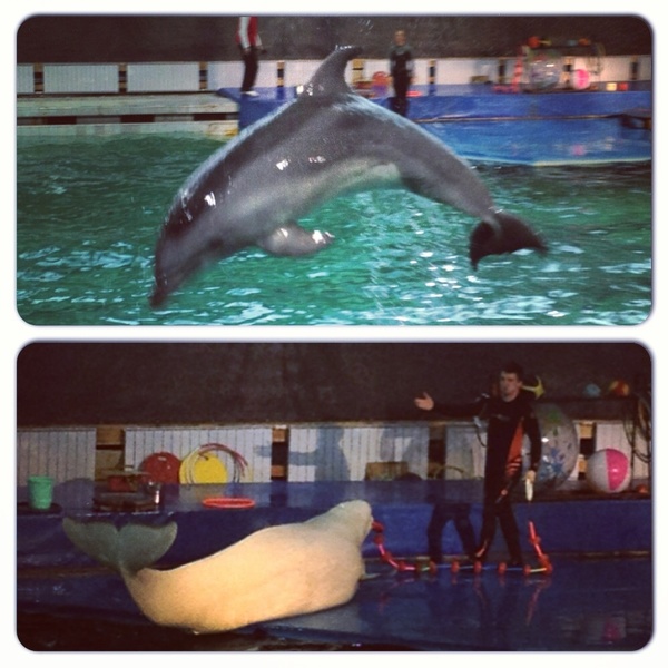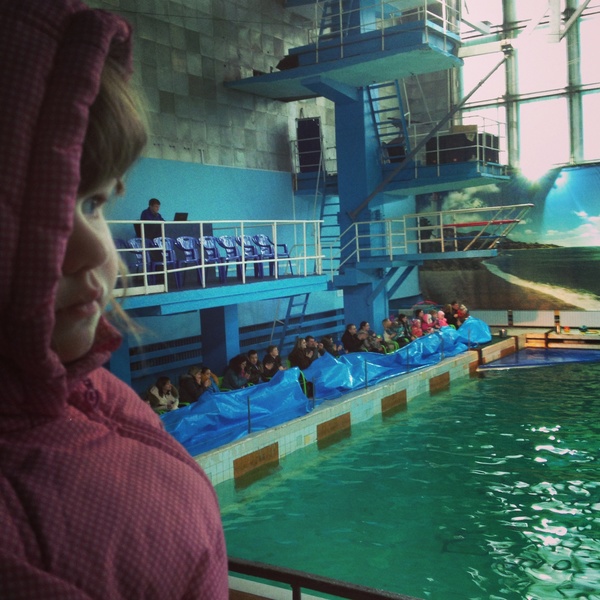 В дельфинарии очень холодно, мы все сидели в верхней одежде)) Наконец-то нашлось место где мне не жарко и не душно)))