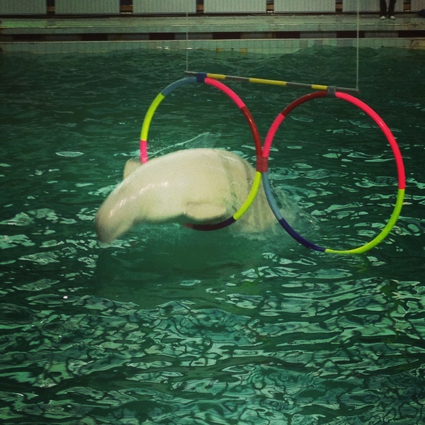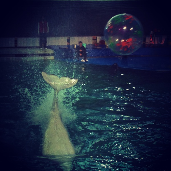 В жизни белые киты гораздо красивее, чем получаются на фото))