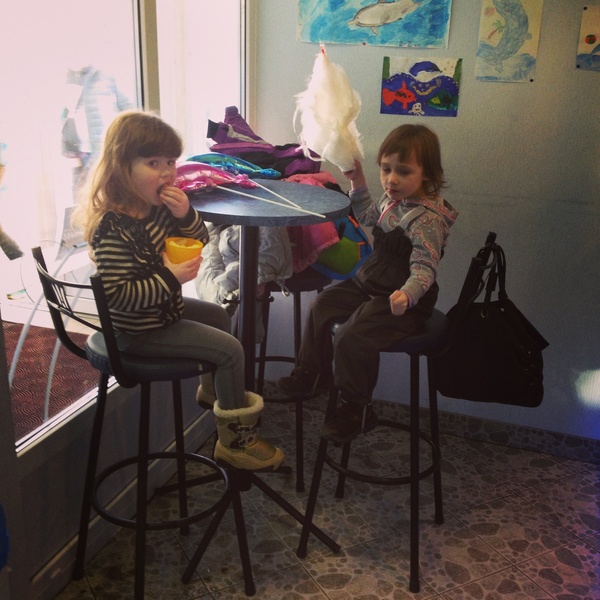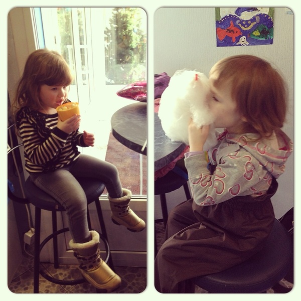 Ясь наотрез отказалась пробовать сахарную вату и ела, взятые с собой, кукурузные палочки))