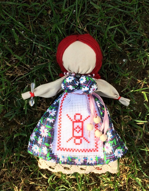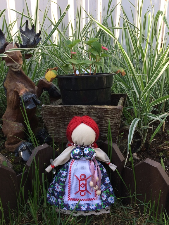 На фартуке у куклы знак, который называется Домовой. В руках будет ещё науз «домовой», на фото действующий узел не могу показать, не серчайте)). У Домовушки есть нижняя юбка из неотбеленного льна-все, как положено)))