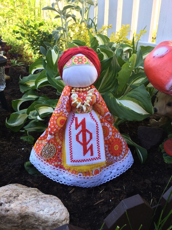 Берегиня в образе Богини Дивы Додолы (Перуницы) - жены Перуна. Дива Додола - Богиня грозы и Небесной влаги. Эта кукла слажена на избавление от вины. Вины вольной и не вольной и вины не существующей.