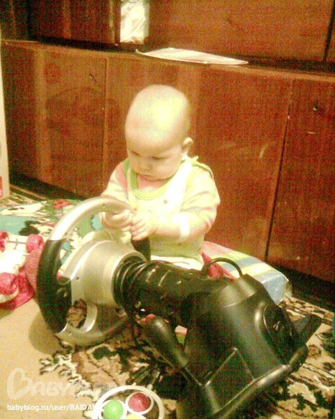 Все побрякушки-цокотушки надоели....зато порулить и машинками поиграть - в самый раз: