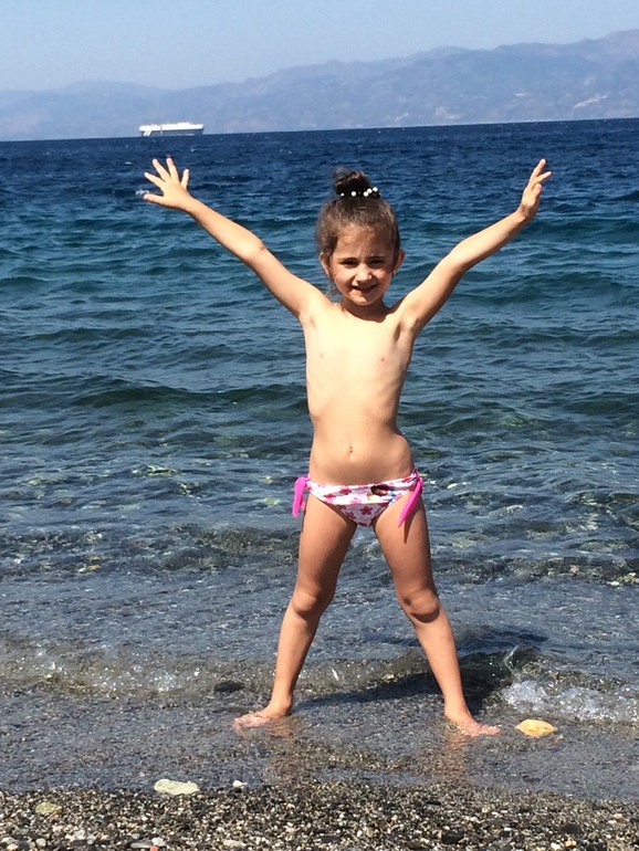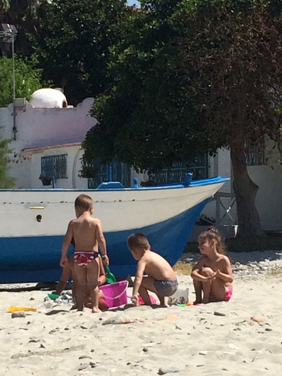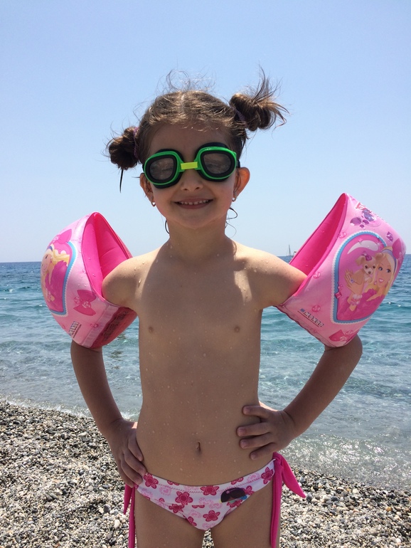 а в выходные уезжаем на загородные пляжи на целый день, обедаем тоже на пляже, домой возвращаемся к 22.00 дети уже засыпают в машине и до утра.Мотя долго боялся моря и не смотря на жару не подходил к морю, а сейчас его не вытащить, губы фиолетовые и кричит ещё плавать ! Плавает в нарукавниках вдоль берега, Алессия делает заплывы со мной далеко....