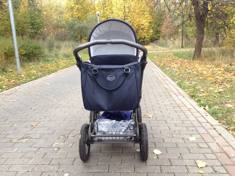 Коляска куплена в конце марта 2014 года и использовалась до середины сентября, в хорошем состоянии. Не коляска, а танк, проедет везде благодаря надувным колесам. Отличная амортизация (пружинная), вместительная люлька (78х35х24),а также очень компактная, войдет в любой лифт. Ширина шасси 58 см. Я откатала своего ребенка практически одной рукой и не знала забот. Бесшумный капюшон, который можно отстегнуть при необходимости, внутренняя обивка выполнена из натурального хлопка, чехол съемный, проблем со стиркой не будет. Верхний материал выполнен из экокожи, который легко моется. Дно коляски вентилируется,, есть ручки для переноски. Тип складывания - книжка. Спинка регулируется и имеет несколько положений.