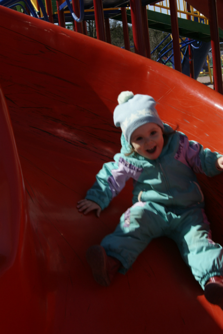 АлисонькаИ ещё не так холодно, как вчера. Пошли опять к соседнему дому, где горки высокие, Алиса их любит. Накаталась, набегалась, пообедала, спит. Мама счастлива )))