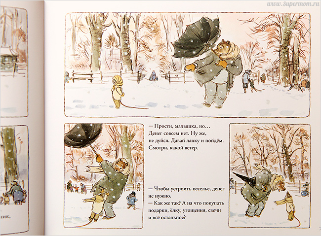 И хоть в книге ничего про зимние праздники, сторож поступает по-христиански, именно так, как описывают в классических повестях и рассказах о Рождестве, когда к дому приходят просить подаяния, и праведные люди никогда не отказывают просящим. В общем, это может быть первая история о доброте и помощи ближнему своему для вашего малыша.