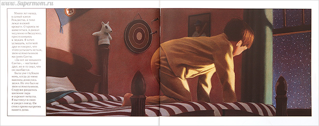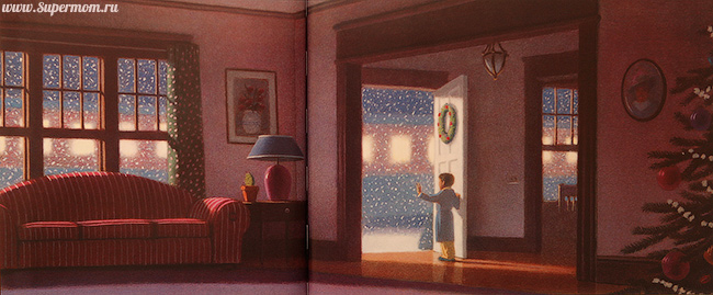 Все содержание книги выглядит примерно так: мальчик проснулся, мальчик увидел поезд, мальчик сел в поезд, мальчик приехал, мальчик получил подарок, мальчик уехал. Никакой интриги, никакого катарсиса, все довольно пресно, как минимум первые пять страниц поезд просто едет вдоль разных пейзажей. Но все дело в том, что автор всем этим подводит нас к одной единственной мысли, которая открывается нам на последней странице. И потому здесь все именно так, как должно быть, без лишних отвлекающих деталей и мишуры.