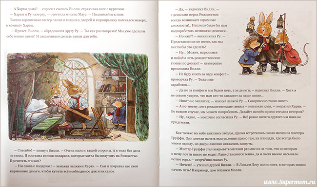 Я купила две книги из серии на пробу, те, что с остролистами и прочей рождественской атрибутикой на обложке. Ну и конечно, как не трудно догадаться, это опять замануха. В истории с похищением от Рождества нет ничего, кроме времени года. Во второй книге (о ней следующим пунктом) хоть тема Рождества и поднимается, но отнюдь не служит главным лейтмотивом всей книги. Да, и еще эта пометка "0+" непонятно зачем. Тем не менее, книга очень уютная и теплая, как раз для чтения темными зимними вечерами. Не верьте аннотациям, она рассчитана на возраст примерно от 3 лет, а по своей сути - нечто среднее между рассказами "Все о кролике Питере" Беатрис Поттер и "Жили-были кролики" Лоика Жуанниго, о которой писала выше.