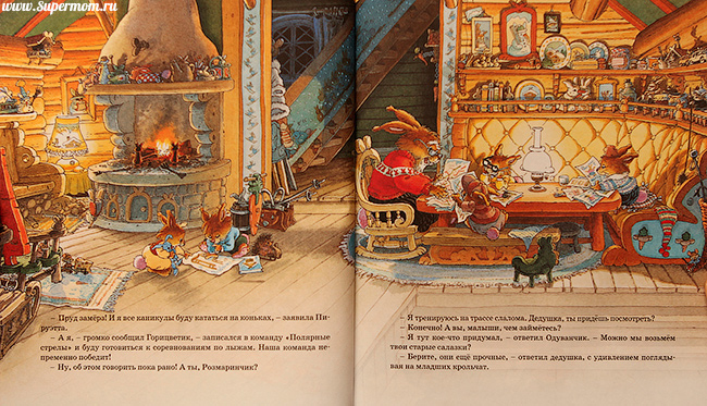 Иллюстрации, конечно, чудо-чудо, что и говорить - вы и сами все видите. Но в книге есть еще и текст. А в тексте нам очень не хватило начала. Книга начинается как-то резко, как будто вы открыли ее где-то посередине. Даже я не сразу разобралась, кто есть кто, потому что друзей нам представляют по именам, а не по принадлежности к звериным кастам.