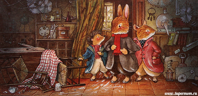 Как я уже писала, серия этих книг своими иллюстрациями во многом копирует всем известнные истории о кролике Питере Беатрис Поттер. Совершенно удивительные и милые кролик, мышонок и ежик ведут себя, тем не менее, как мальчишки начальной школы. Их сфера интересов (заработать деньги), язык, которым они изъясняются ("ты меня нервируешь", "хватит ныть"), предмет их разговора (жизнь "богатеев", обсуждение, как они роскошно живут, купаются в деньгах, что им некуда девать свои богатства - ни одной страницы нет без упоминания главной темы книги - темы денег) - все это совершенно не нужно знать сейчас маленьким детям. Да и сам перевод изобилует всякими клише типа "держу пари", "вечер имел огромный успех", "потрудился на славу".