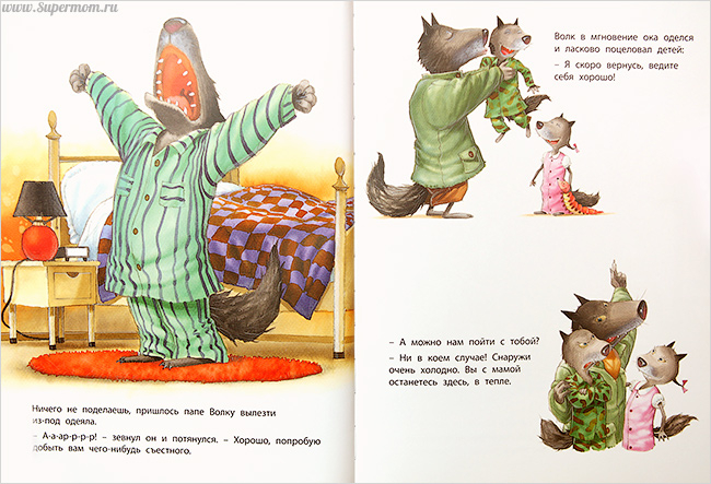 Поэтому волк пошел в деревню и купил пряников и булок, а по дороге угостил ими всех несъеденных зверей. И хорошо, что Алиса пока не задает вопросов, почему при наличии денег он не мог сразу пойти в магазин и купить себе там мяса) Но история и правда очень милая.