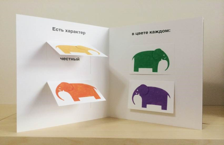 Это не просто книга, которая поможет запомнить цвета. «Разноцветные слоны» - игра воображения, где слон неожиданно меняет цвет с красного на зеленый, или вовсе становится разноцветным. А ещё малышу непременно понравятся открывающиеся окошки и прозрачные страницы. А родители оценят задания для тренировки памяти и интересные ассоциации.