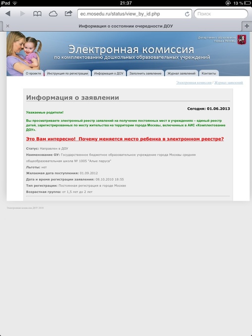 Статус в электронной очереди в садик стоит "направлен в доу", это значит, что дочку с сентября берут в садик! Там, правда, 3 сада под этим названием (их сейчас по всей Москве объединяют), буду точнее узнавать, но это для нас огромное счастье, потому что она садик просто обожает (мы в этом году ходили в группу кратковременного пребывания, это 3 раза в неделю по полдня)