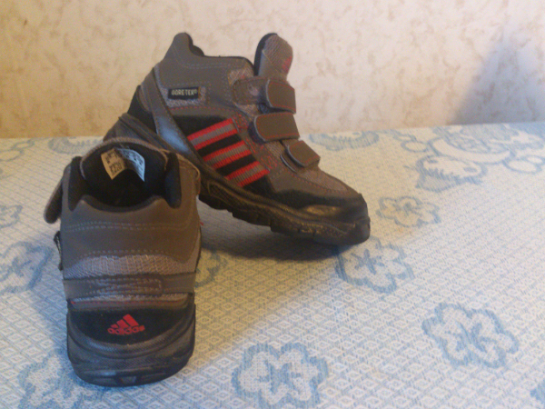 3. Обувь Adidas - оригинал. Можно носить до -3, отличный вариант для холодной осени или ранней весны. Primaloft. легкие и теплые. 700 рублей. Отличная неснашиваемая обувка, не промокает и не потеет ножка. на ножку 14 см.