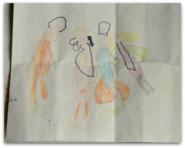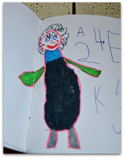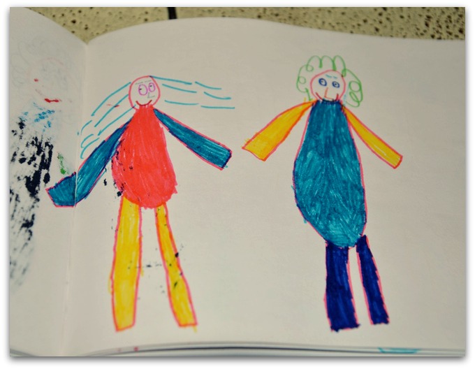 Что интересно, практически никогда не рисует юбки. Ну только уж если с самого начала принцессу рисует. Тогда и волосы до полу, юбка пышная и цветочки везде. Поэтому пол нарисованного человека я определяю по кучерявости волос.