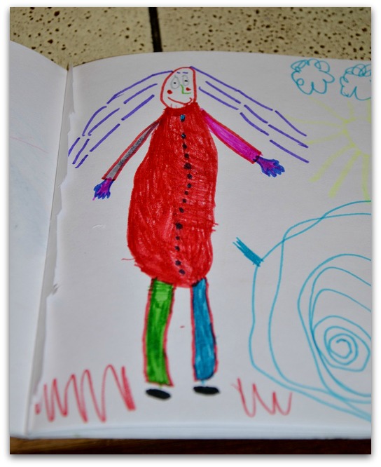 А тут недавно первую осознанную любину абстракцию нашла. Тоже человек. Очень вольным стилем нарисован. Типа как нынешние мультики.