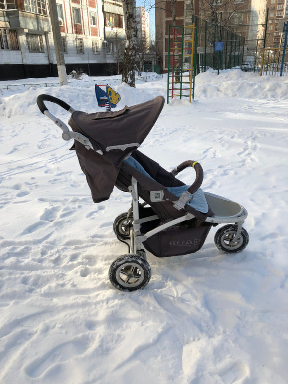 Легко управляется одной рукой! Есть также страховочный ремень (крепится к коляске, другой конец - к руке).