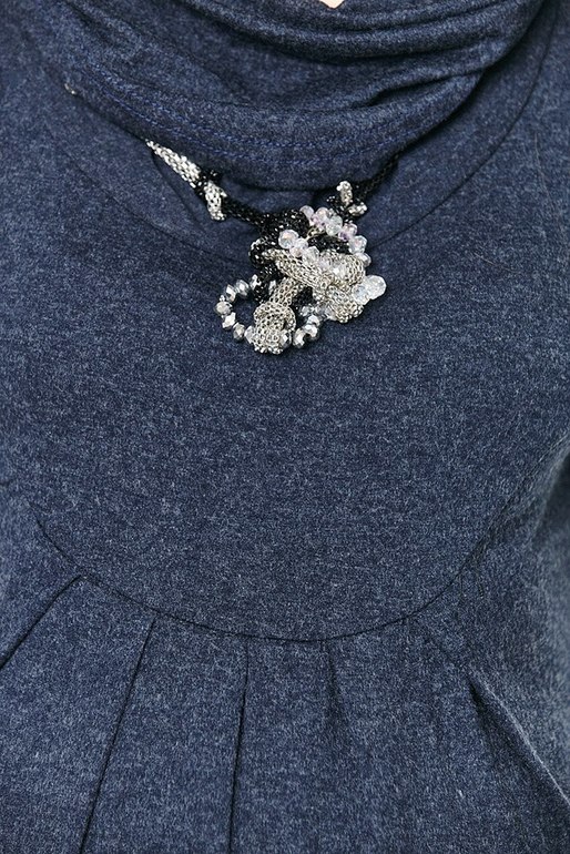 Очень удобная и красиво скроенная туника для беременных. Подходит на любой животик благодаря драпировке на животе. Воротник хомут, рукав длинный. Фурнитура входит в комплект (обращаю внимание, бусы могут быть разные). Нежная приятная ткань меланж