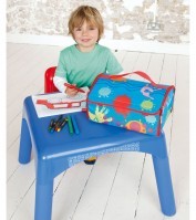 6) дорожный набор для рисования elc - Этот чемоданчик крепится к спинке переднего сидения и при открытии превращается в маленький рабочий стол для рисования, лепки или письма. В комплекте альбом для рисования, фломастеры, восковые мелки и пенал.