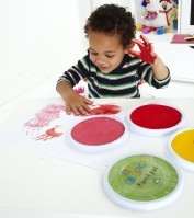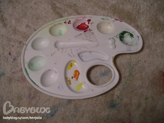 Рисуем пальчиковыми красками (иногда покупаю, но сейчас стала чаще сама делать, так как очень много их расходуется), гуашью, акриловыми красками (рисовали на камнях), акварелью. Хочу купить краски для того чтобы рисовать на ткани ( у нас есть старые тряпочки на которых Степа очень любит рисовать, я их потом стираю), и хочу купить краски витражные, баночку стеклянную для печенья и разрисовать ее вместе со Степой.