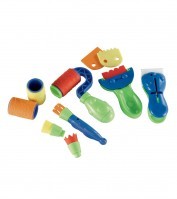 3) еще рисуем губками для посуды и зубными щетками, и вот такой чудесный валик у нас есть, который я купила в гипермаркете творчества Леонардо - это вообще рай для творческих идей их воплощения, также рисуем штампиками (разные твердые предметы от конструктора)