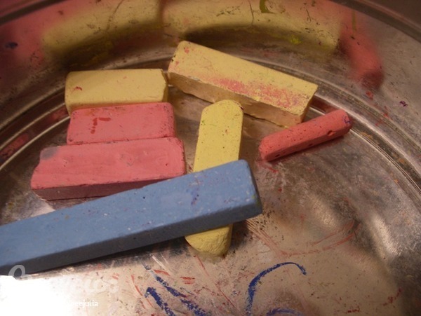 6) мел - с наступлением зимы стали активно рисовать мелом дома на доске и на бумаге, еще солькрасим мелом