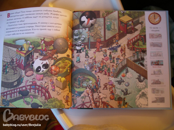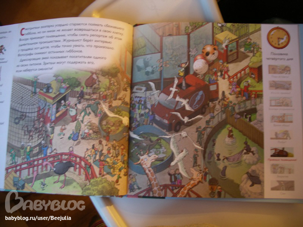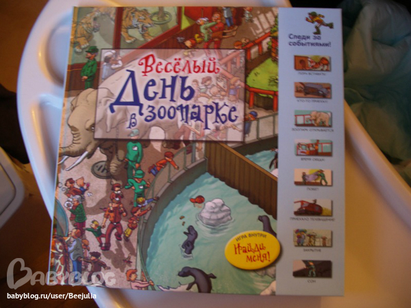 кстати, перед посещением зоопарка активно "читали" вот такую книжку. Это книжка-картинка, как и Зимняя книга, например. Из старнички в старничку можно следить за героем, который понравился: