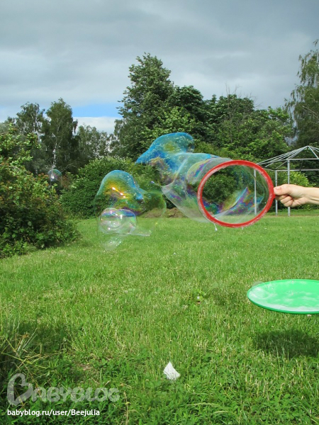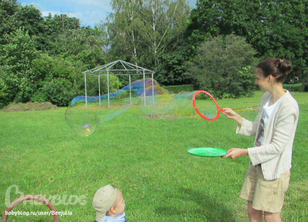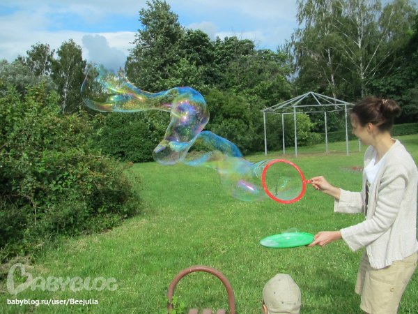 супер!!! такие огромные )) Юль, надо двтгаться теперь дальше - покупай обруч, большой тазик, много-много мыльного раствора - и делайте супер гигантские пузыри ))) А мы сегодня за беговельчиком ездили )))