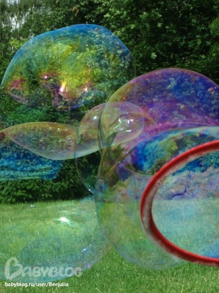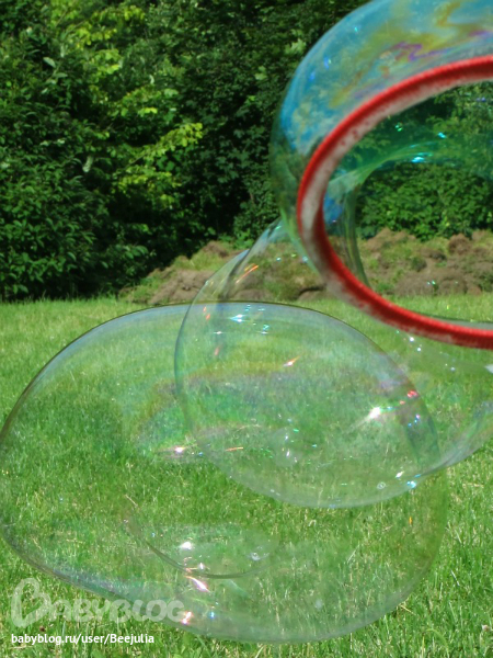 Надували и мы, НО они как я начинала их дуть ( рукой вести) быстро лопали, красиво конечно, дети в восторге, но мне хотелось большего, а пузырь круглый у вас получалось надуть? Я вот думаю жидкость была может не качественная, она помутнела за год у меня. хотя срок годности до 2015г.