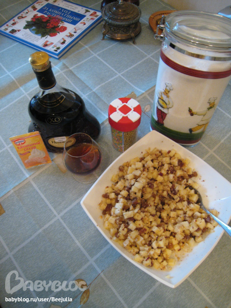 Изюм замочить в коньяке на 20-30 минут