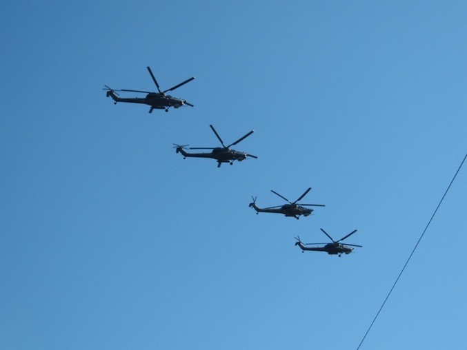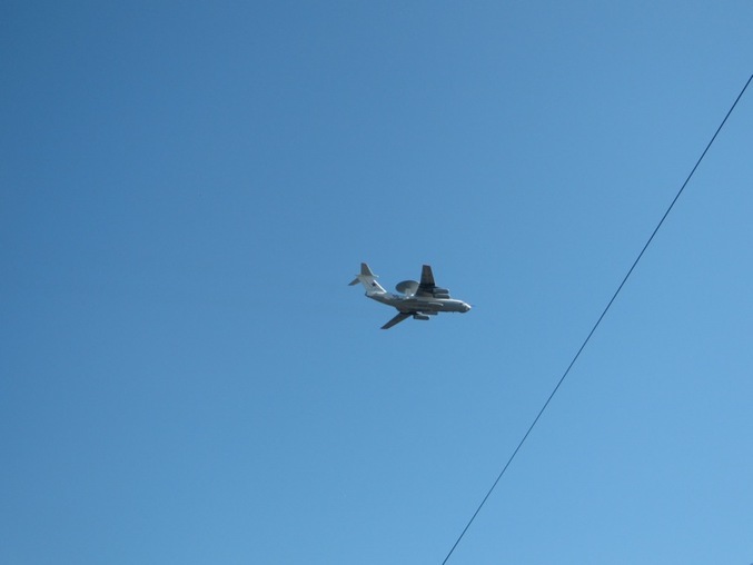 Второй год мы уже ходим на репетицию парада Победы. Столько впечатлений. А в этом году еще и авиация так "обширно" представлена. Еще 3 мая, когда репетиция была мы со Степкой к окнам прилипли и все самолеты рассматривали. А тут нам вообще повезло: мы поехали в гости к тете и пошли на балкон смотреть всю авиацию, она как раз над их двором летела, а потом побежали на другую сторону Ленинградки и всю технику еще посмотрели. Степка от авиации вообще в полном восторге!!! Техника ему понравилась меньше, сказал шумно очень и пыльно и горячо глазкам, так что отошли подальше! Смотрим мы всегда это действие на углу где техника с Ленинградки поворачивает на Ходынку. Народу было мало. Впечатление еще производит на сына большое количество уборочных машин, которые потом улицу мыть начинают! Они не такие шумные, поэтому их не так страшно смотреть)))))