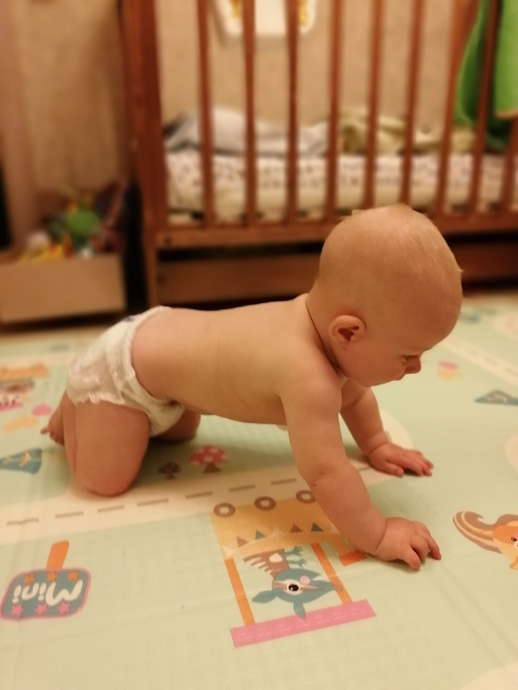 Но он пополз ооочень рано, без недели 6 месяцев было.