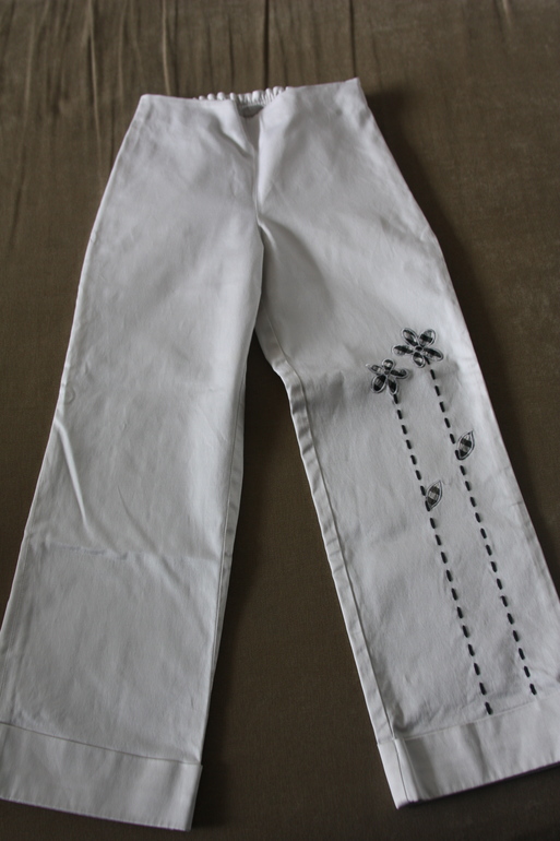 33. Брючки белые с черной декоративной отделкой. 8 лет,128 см. 1200 руб