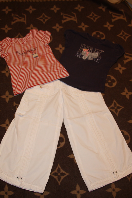 14.Улетные брюки Kenzo.128 рост. 1500 руб. Цвет белый. С этими футболками смотрится очень классно, морячка ни дать ни взять)))