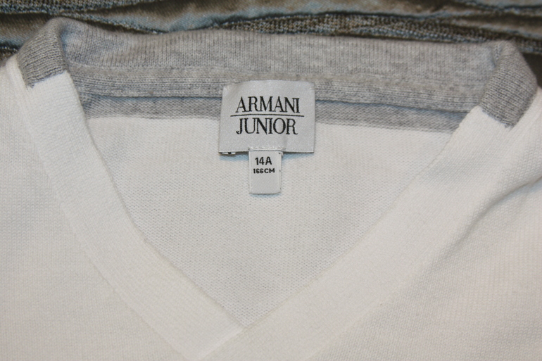 4.Джемпер ARMANI 14 лет (166 см) ,100% хлопок. Белый с серой отделкой. 2800 руб ПРОДАНО!!!