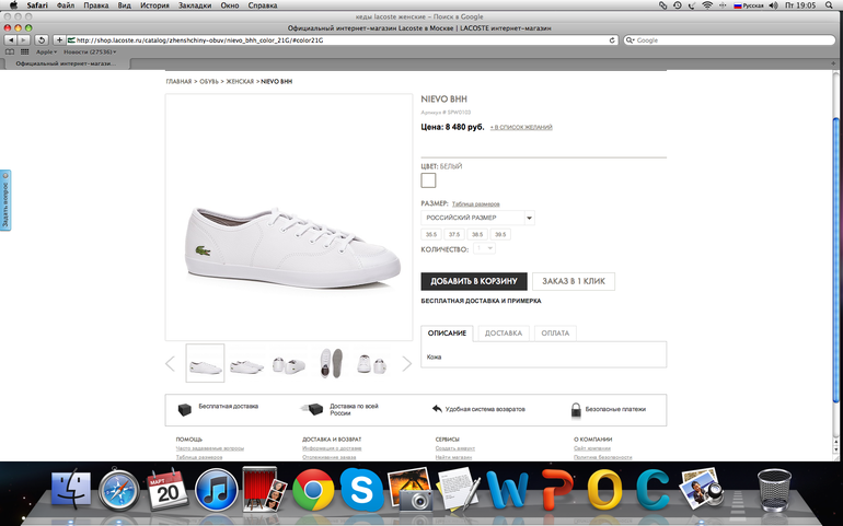 Белые кожаные кеды LACOSTE. оригинал