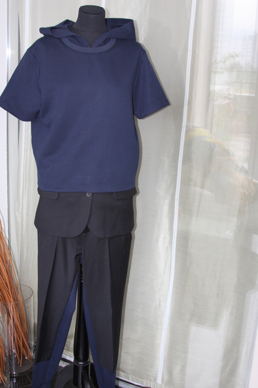 2. Костюм MARTIN MARGIELA. Отрыв бошки!!!!! Комбинация двух фактур ткани-трикотаж и костюмная! Сине-черный цвет! Без следов одевания!!!! Кофточка-M, брючки -S. 18 тыс ОПЛАЧЕНО!!!