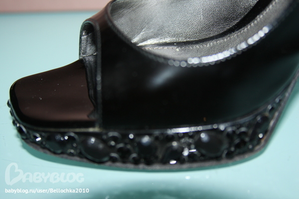 Размер 37,5.Состояние безупречное! Каблук и платформочка отделаны камнями.На ножке смотрятся очень изящно,Черный лак.