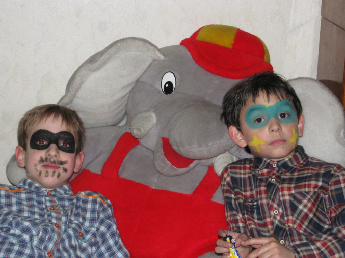 из класса мы сразу забрали нашего самого большого друга Гиги и его папу, с которым отлично общается Шотка, подошли сестра с племянником и наш американец Аквел, позже ждали Сандрика крестную с детьми. дома планировались шашлыки, пицца, фрукты, мороженое и торт. хорошо, что мы все таки расчитали все с большим плюсом :))))