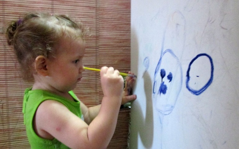 Любит рисовать на холодильнике. Фломастерами, красками, всем. Холодильник уже напоминает Третьяковку)
