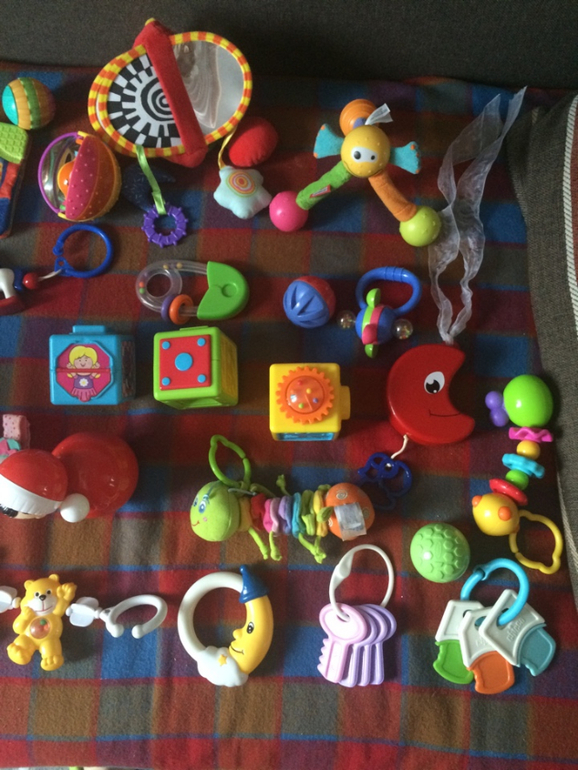 В пакете 27 игрушек (погремушки, кубики, прорезыватели, развивающие, для мелкой моторики). Все игрушки фирменные : Tolo, TinyLove, Taf Toys, ELC. В отличном состоянии. Стоимость пакета 1500 рублей