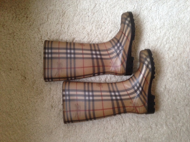 Резиновые сапоги Burberry, классика, 38 размер. Состояние очень хорошее. Носились редко. Из нюансов маленькое пятнышко на внутренней стороне, обнаружила при детальном осмотре.