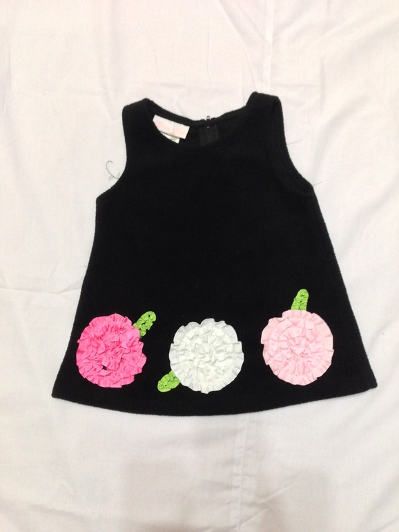11.Платье флисовое черное с накладными цветами. 300 рублей. Маркировка 18 месяцев, реально на 12 месяцев, но наверное смотря какой ребенок ( у меня толстенький)))