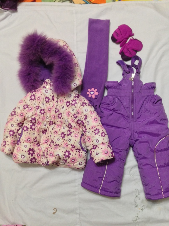 21.Зимний комплект: пуховик, штаны на резинке и подтяжках, шарф, варежки , р-р 74 см - 2000 руб. Нет ни пятне, ни потертостей. Следы носки только на подкладе (подзакатался флис).